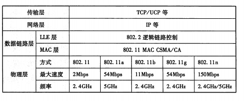 其中定义的数据链路层的 一部分(MAC层)适用于所有IEEE802.11的其他标准。MAC层中物理地址与以 太网相同,都使用MAC地址。