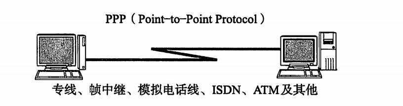 PPP可以使用电话线或ISDN、专线、ATM线路。此外,近些年人们更多是 在用ADSL或有线电视通过PPPoE (PPP over Ethernet)实现互联网接入。PPPoE 是在以太网的数据中加入PPP帧进行传输的一种方式。