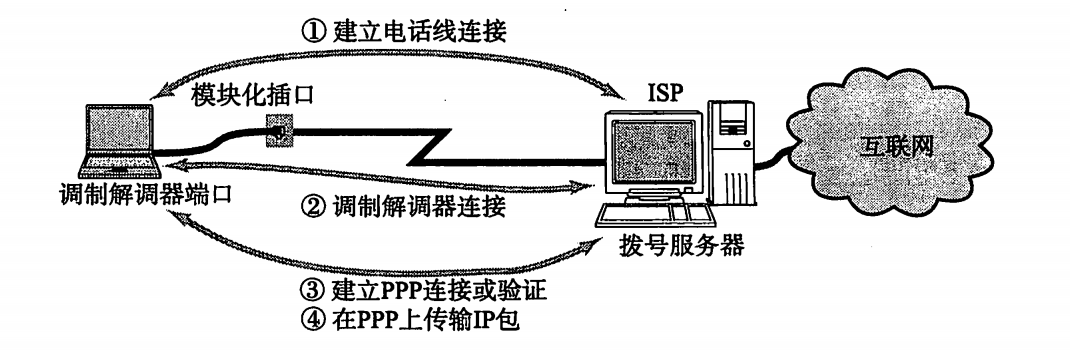 另外,在通过电脑进行拨号时,PPP已在软件中实现。因此,那些插人或删 除"0"的操作或FCS计算都交由电脑的CPU去处理。这也是为什么人们常说 PPP这种方式会给计算机带来大量负荷的原因所在。