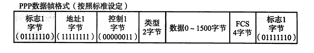 PPP的数据帧格式,其中标志码用来区分每个帧。这一点与 HDLC"协议非常相似,因为PPP本身就是基于HDLC制定出来的一种协议c