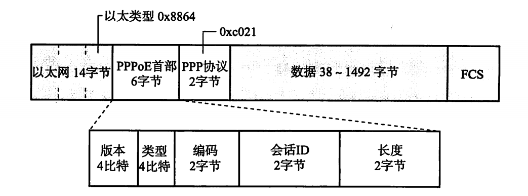 在这种互联网接入服务中,通信线路由以太网模拟。(物理上使用以太网,以太网内部使用PPP,即ppp外面套一层以太网)由千以太网越来越普及, 在加上它的网络设备与相应的NIC价格比较便宜,因而ISP能够提供一个单价更 低的互联网接入服务。