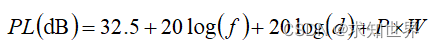 在自由空间传播模型的基础上增加了墙壁和地板的穿透损耗。其公式如下图所示。
