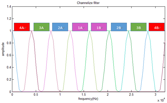 因此需要构造不同频段的滤波器,四个蓝色阴影部分拼接(累加)即可。