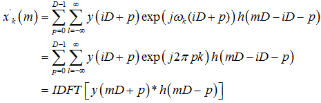 其中ha (n) = h(n)* exp((-im*pi*n)/8)为prototype filter,至此便完成了信号的频分多路复用(FDM)理论推导.