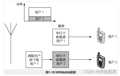 非正交多址技术NOMA的基本原理如图所示。