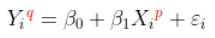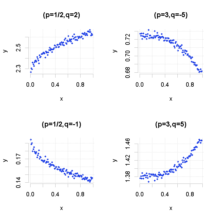 + regpq=lm(I(y^q)~I(x^p) )