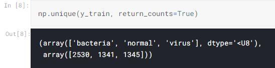 # Put all train labels to y_trainy_train = np.append(norm_labels, pneu_labels)