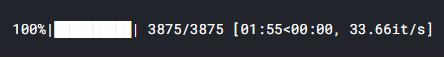 声明了以上两个函数后,现在我们可以使用它来加载训练数据了。如果你运行下面的代码,你还将看到为什么我选择在该项目中实现tqdm模块。