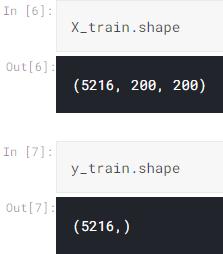 现在让我们回到X_train和X_test。重要的是要知道这两个数组的形状分别为(5216、200、200)和(624、200、200)。