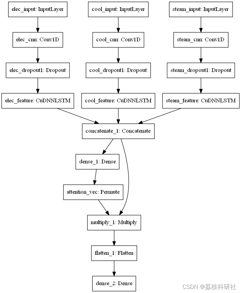 attention_model.py输入冷、热、电负荷,提取深层特征,加入attention机制,观察结果,模型流程图保存在attention_model.png