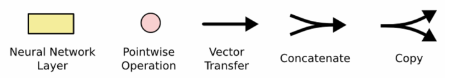 如上为标准的RNN神经网络结构,LSTM则与此不同,其网络结构如图: