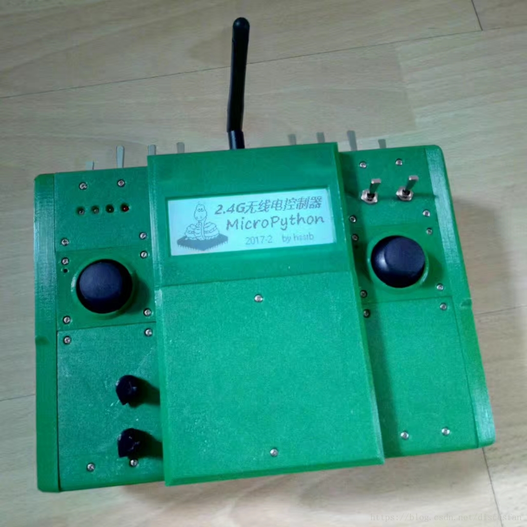 如前所述,这一版是基于PYBoard的,MicroPython编程,开机立即直奔主题进入主程序循环,不像树莓派还要等系统初始化之后,才能轮到我自己的程序。当时的确很激动,风风火火搞了下去,研究怎么设定自己的FHSS跳频机制,各种尝试,最后基于PYBoard的能力以及Python的效率设定每秒36跳最合适,就这样发射机、接收机都很完美。最后把接收机装到自己的1:8四轮驱动悍马车上,悍马跑了很远很远,RF模块也很给力!