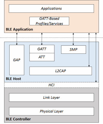 BLE 规范中定义了 GAP(Generic Access Profile)和 GATT(Generic Attribute)两个基本配置文件。