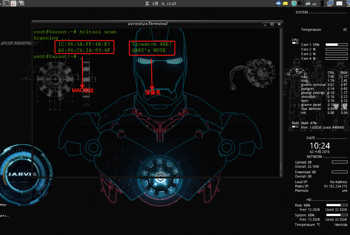 hcitool lescan :扫描附近低功耗蓝牙设备
