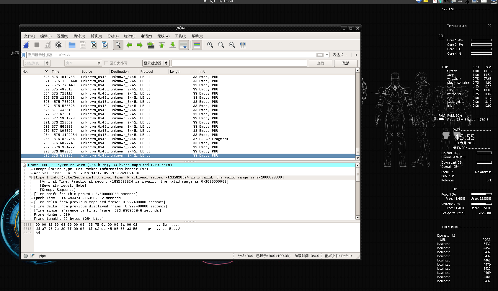 使用这条命令我们可以把设备捕获到的数据包保存到本地,完成后可导入wireshark进行数据包、协议分析。