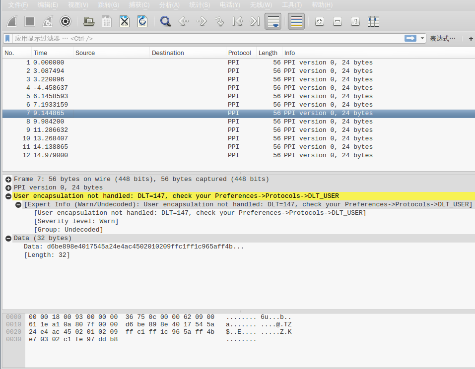 wireshark导入嗅探到的蓝牙数据包需要处理一下才能正常查看,不然无法正常分析数据: