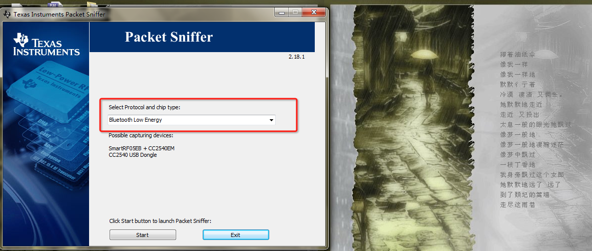 使用方法可参考:Ti.com.cn/packet-sniffer 这种嗅探方案优点是廉价,不足是只能嗅探到广播信道的数据包,无法捕获连接完成后也就是设备通信过程中的数据包: