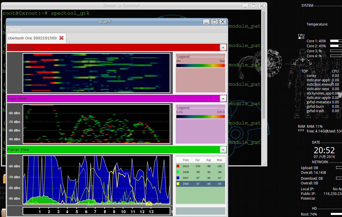 spectool_gtk 扫描附近信号并在频谱上显示: