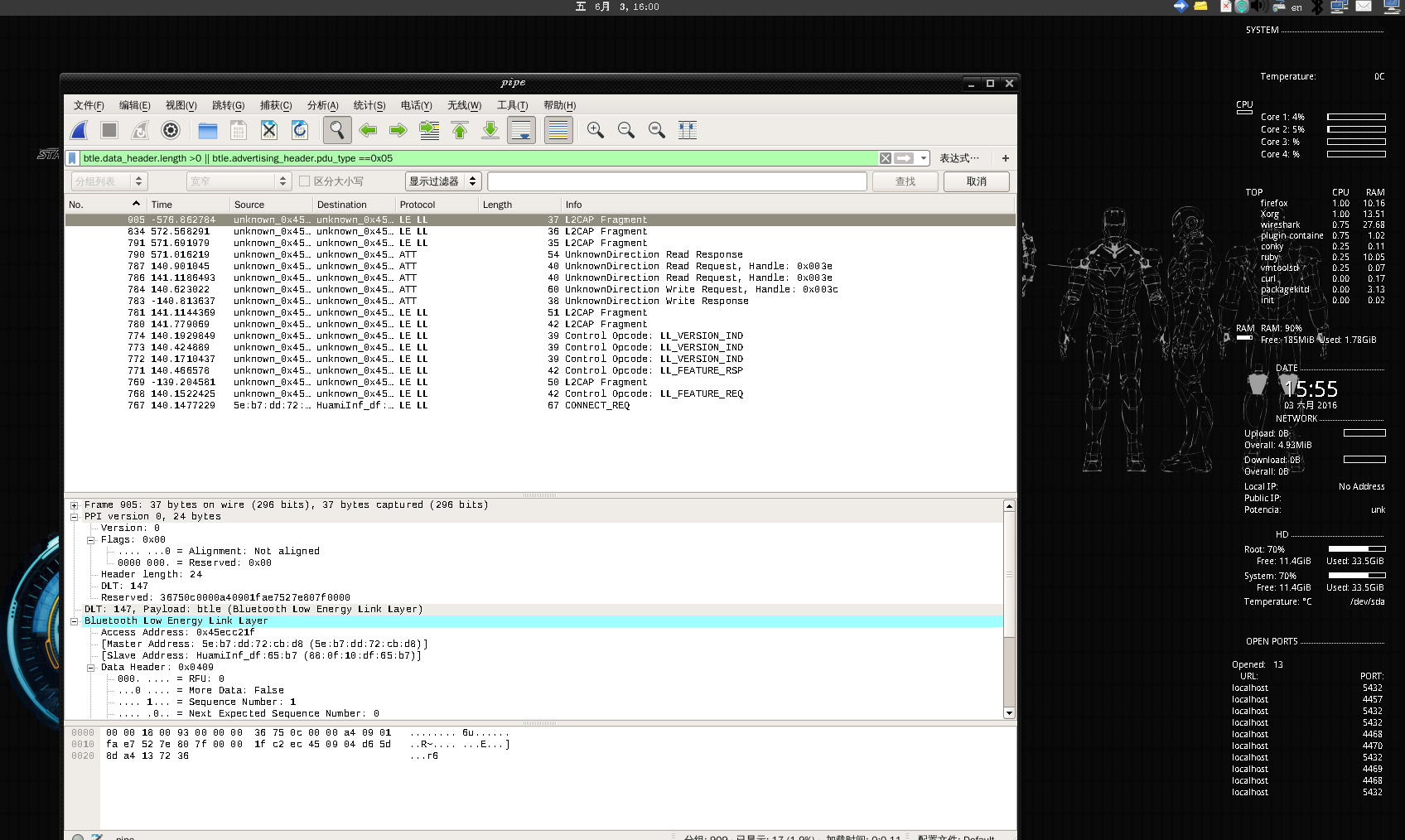 使用规则过滤数据包:参考Capturing BLE in Wireshark