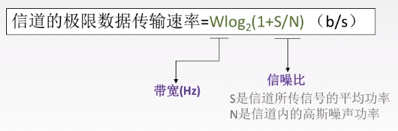 - 信道的带宽或信道中的信噪比越大,则信息的极限传输速率就越高。