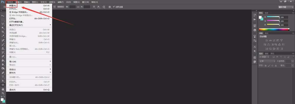 2、点开文件下拉菜单找到新建,或者按快捷键组合ctrl+N。打开新建面板。