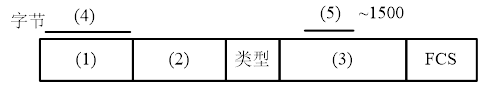 37. (填图题)下图是MAC帧格式。请在空格1-3处填上相应的字段名,在空格4和5处填上字段的大小。
