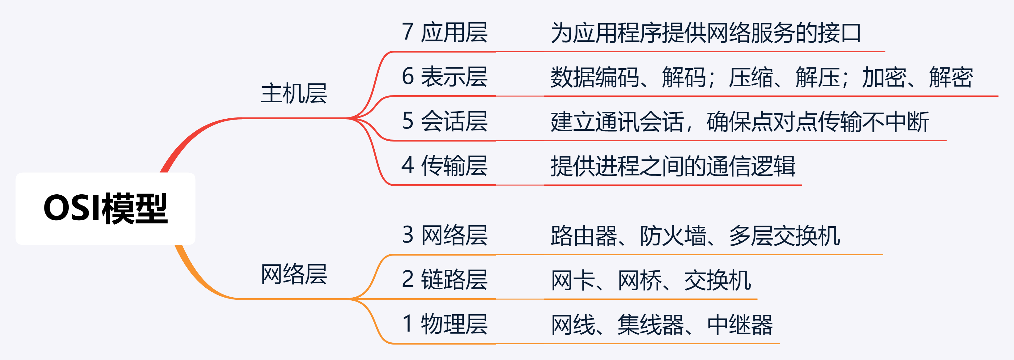 OSI是一个从底层硬件到上层软件的分层式结构,自下而上分为七层。