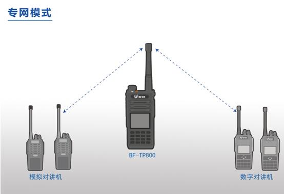 在这样的市场大背景下,北峰BF-TP800公专融合对讲机基于对行业应用的深层理解,进一步打破单一的公网或单一专网的产品技术壁垒,为不同用户提供了专网单模式、公网单模式、公专网混合双模式、中继模式不同模式的通信选择。