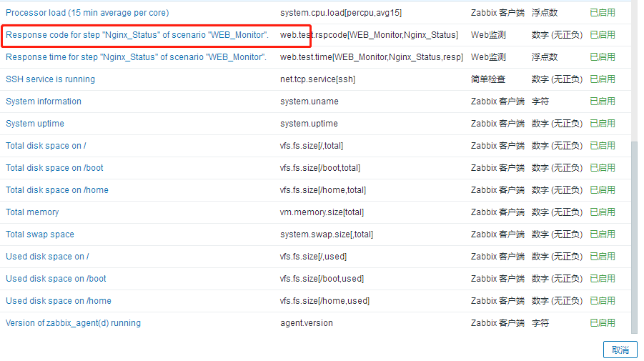 以上就是帅气飞机最近收集整理的关于Zabbix创建web场景和触发器的全部内容,更多相关Zabbix创建web场景和触发器内容请搜索靠谱客的其他文章。