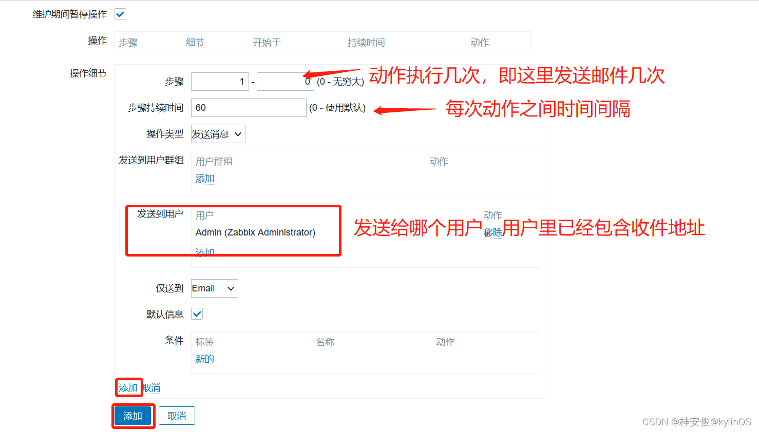 如上,设置好触发器、邮件服务器、收件人,剩下就是创建动作