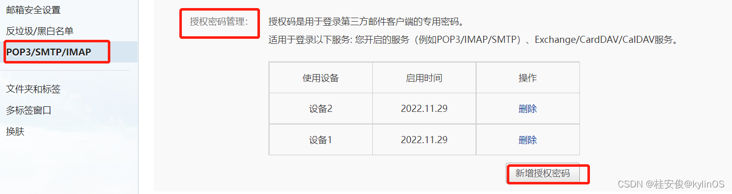 开启SMTP服务,开启过程会告诉你授权码,授权码只明文显示一次,需要保存记录下来: