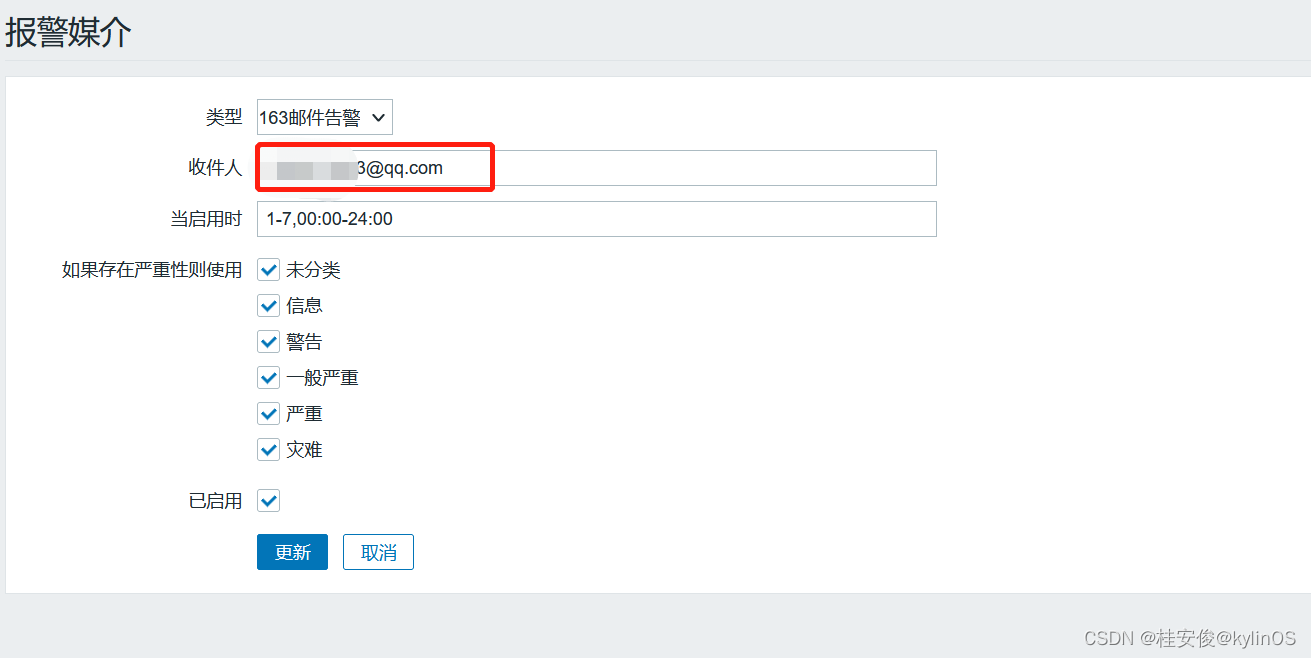 设置收件人qq邮箱地址,然后更新保存: