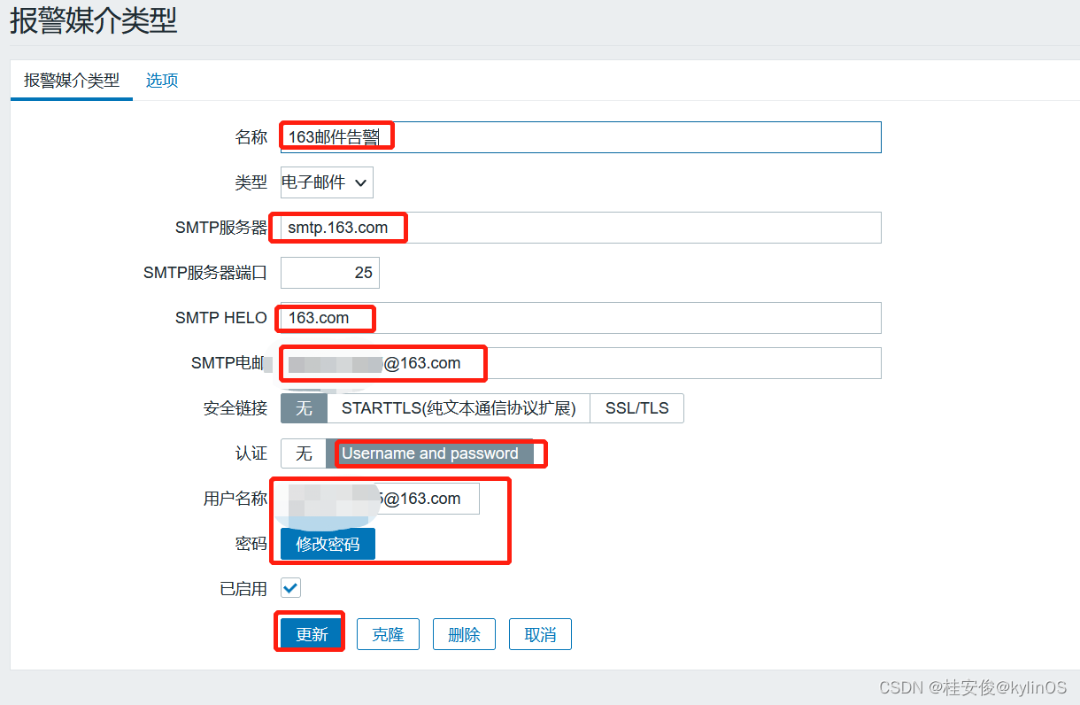 六、使用163邮箱互联网发送告警邮件
