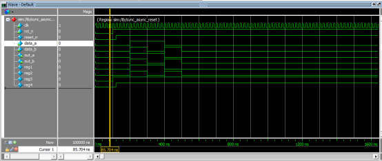 观察波形可以看出,我们外部输入的复位信号rst_n是一个异步复位,产生的reset_n是一个同步信号,它用于其他模块的输入的复位信号。