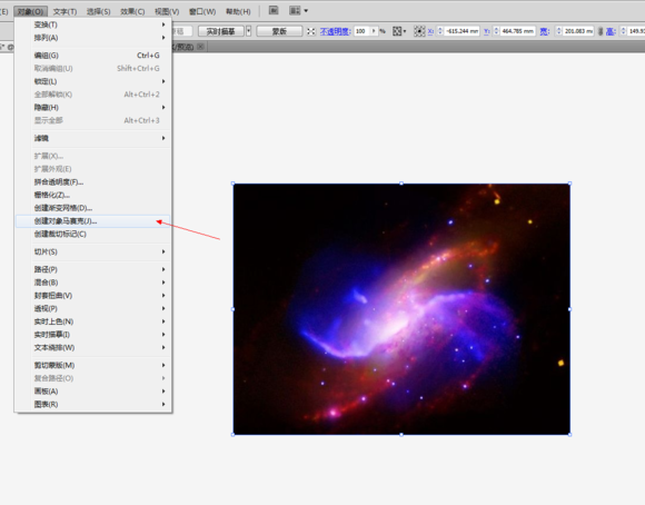 2、下载 置入之后(或者还有个更快的方法,我平时喜欢用的,就是在网上截图,然后在ai里ctrl+v,粘贴上,对图片质量要求不高的情况下,这个方法超快),然后就是执行对象——创建马赛克。