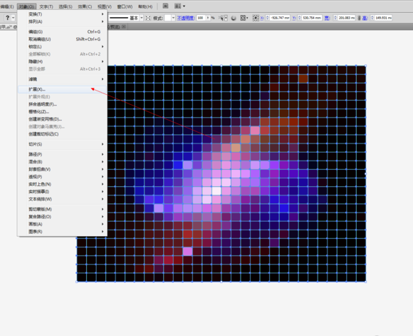 7、接下来给他执行对象 - 扩展 命令,就是把描边图形化,cdr叫转曲的。
