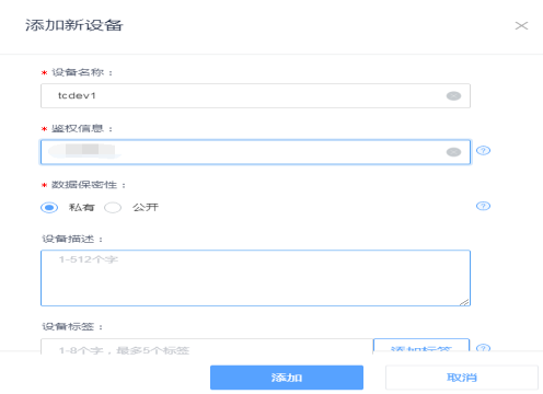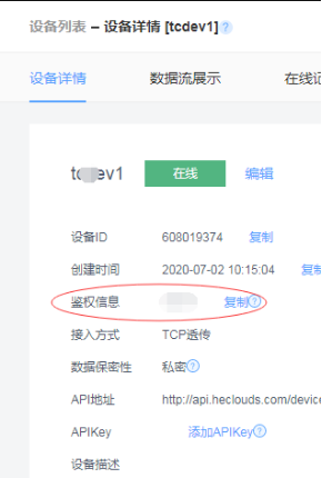 AuthCode 为 鉴权信息(创建设备的时候所指定)