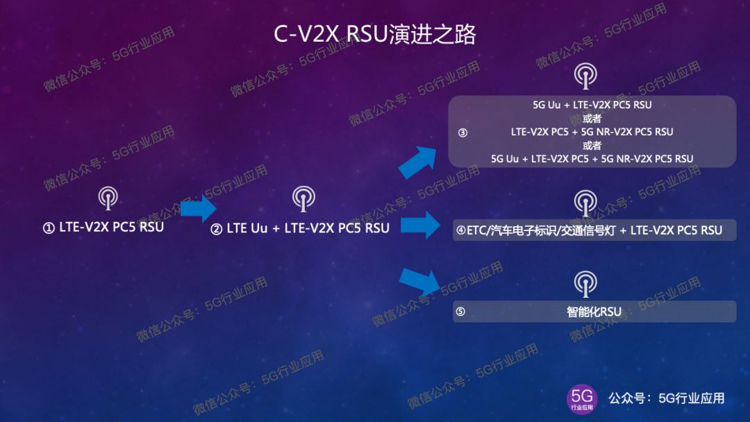 ③5G时代到来后,RSU产品形态将更加多样化,比如5G Uu + LTE-V2X PC5版本,或者LTE-V2X PC5 + 5G NR-V2X PC5版本,或者5G Uu + LTE-V2X PC5 + 5G NR-V2X PC5版本。