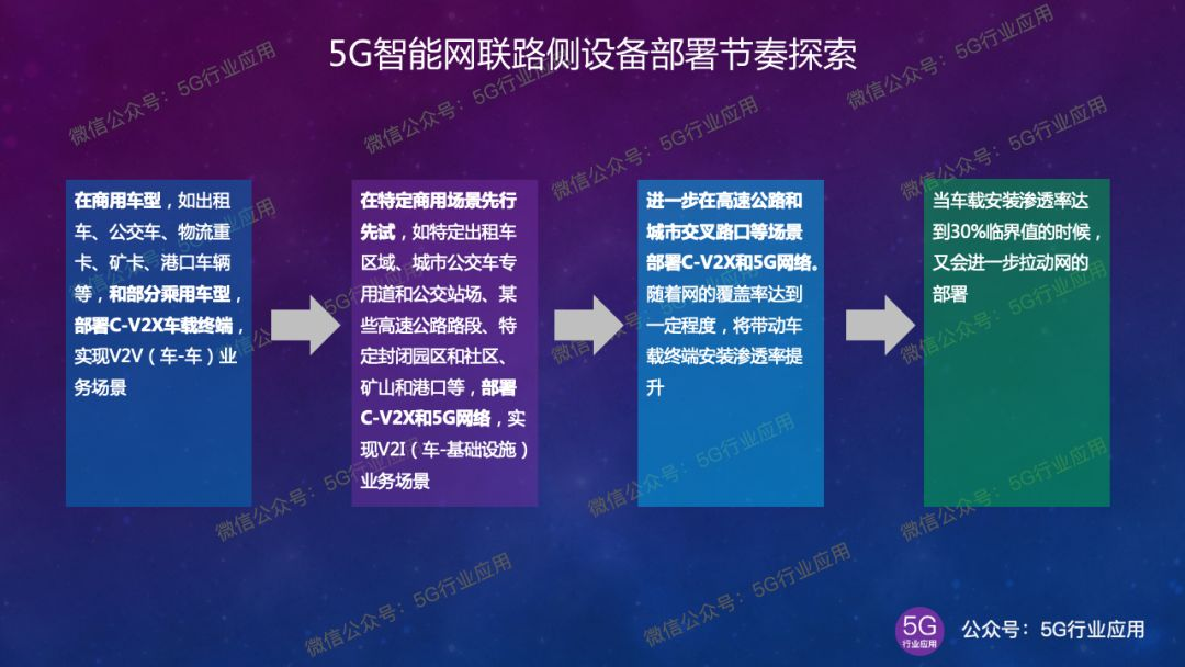 ③更进一步在高速公路和城市交叉路口等场景部署C-V2X和5G网络。随着网的覆盖率达到一定程度,将带动车载终端安装渗透率提升;