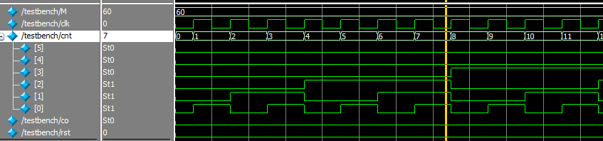 练习2:编写testbench,仿仿看带有复位输入、进位输出的模M计数器