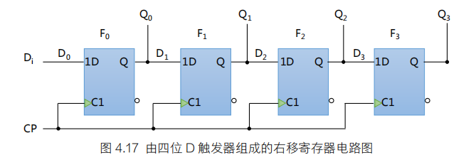 当时钟上升沿到达时,1位输入数据din进入qtemp的最高位,qtemp的高3位依次向右移动1位。