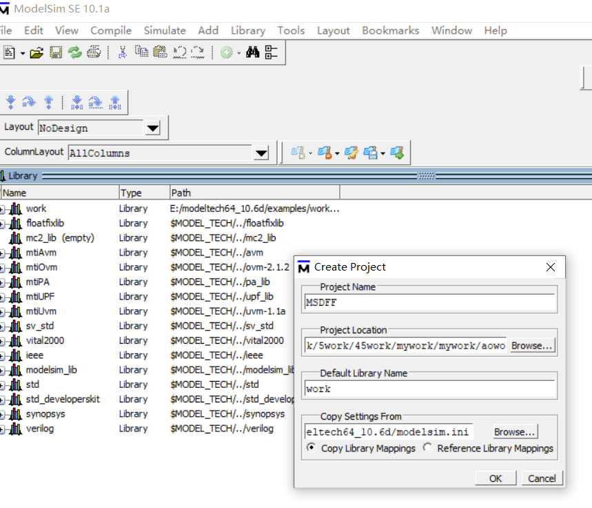 一、打开modelsim新建一个project MSDFF