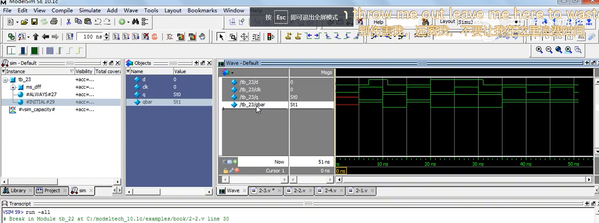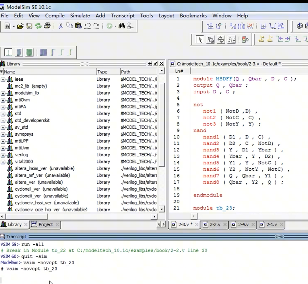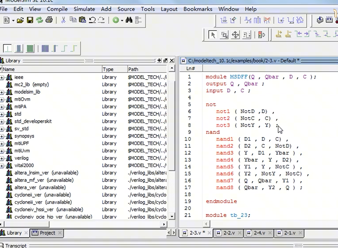 实验:用modelsim完成主从D触发器的门级建模