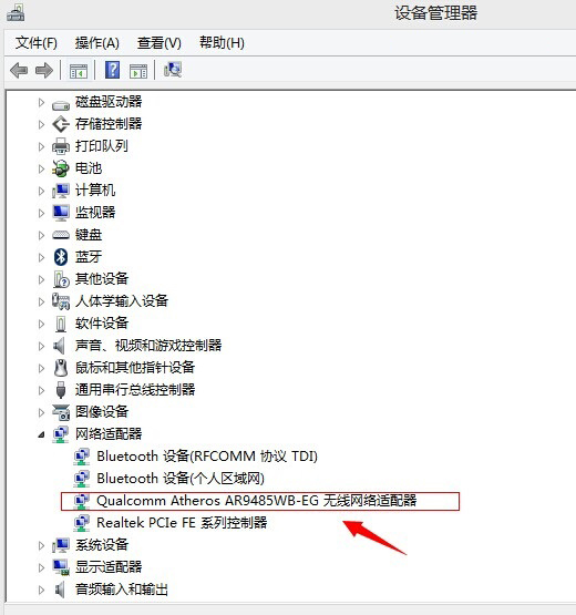 进入设备管理器之后,我们在网络适配器中,看看有没无线网络适配器即可知道,如果有无线网络适配器,则说明笔记本是内置无线网卡的,如下图所示:
