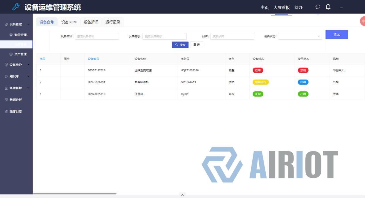 购置管理| 设备台账 | BOM管理 | 设备折旧 | 运行记录查询