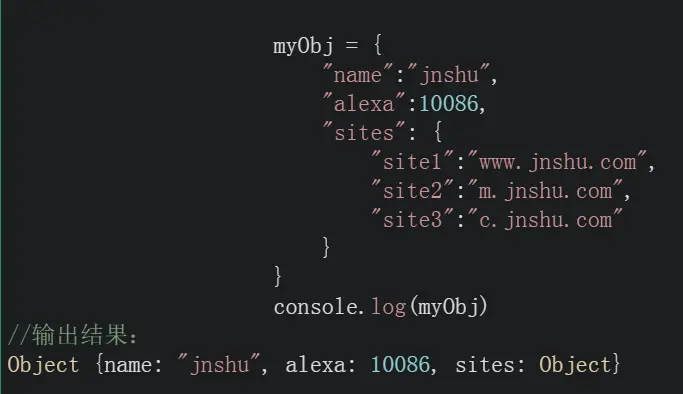 var obj = {a: 'Hello', b: 'World'}; //这是一个对象,注意键名也是可以使用引号包裹的