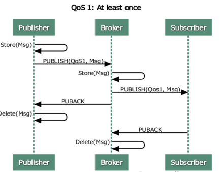 b、至少一次,即Qos=1,确保消息到达,但消息重复可能会发生。