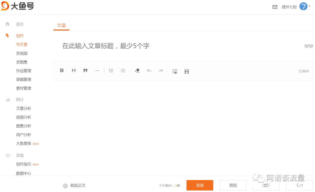 以上就是爱撒娇萝莉最近收集整理的关于阿语谈流量之自媒体大鱼号讲解1.1.4的全部内容,更多相关阿语谈流量之自媒体大鱼号讲解1内容请搜索靠谱客的其他文章。