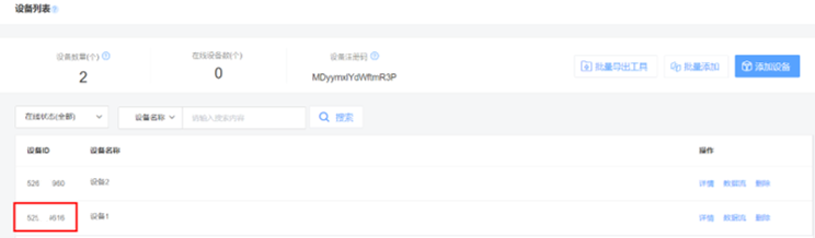 Step 4:在开发者中心中的设备列表中,选择需要查看的设备,记录其设备ID。