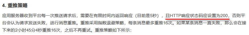 平台推送数据后,需要服务器返回响应,具体参见截图文档。